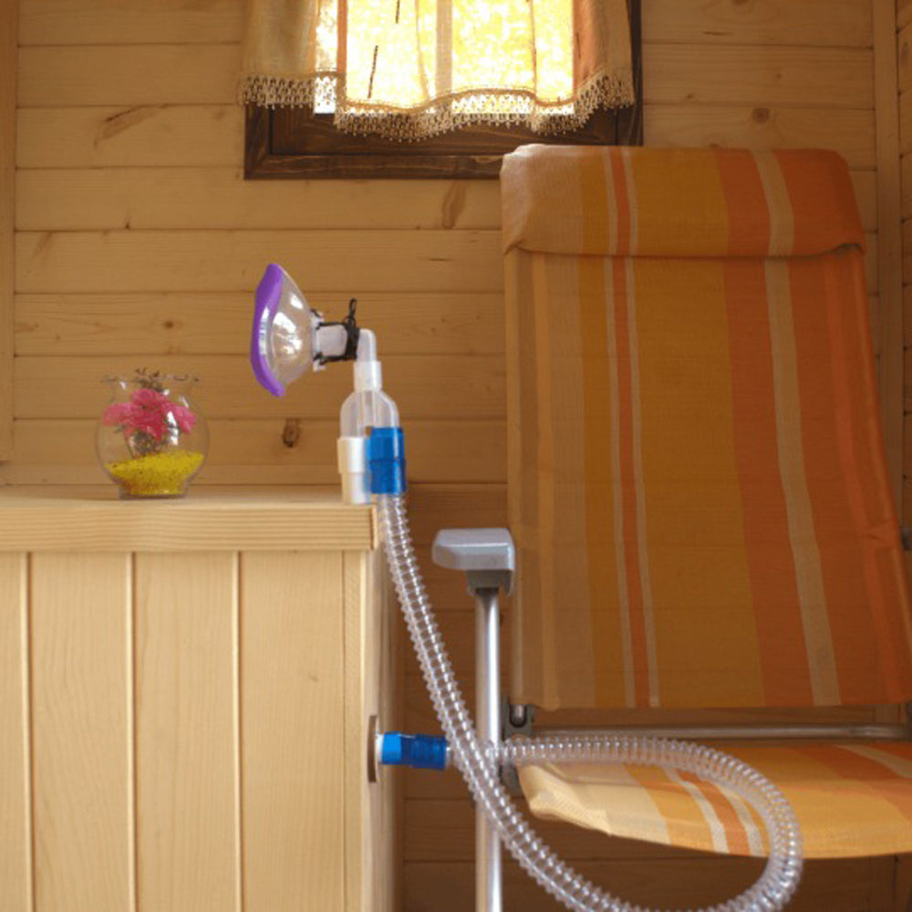 You simply get comfortable in a nice chair and put a mask on your face. You sit back, relax and enjoy the aroma of the honey, the propolis and the essential oils. You inhale the enriched and disinfected by the bee family air. With this method, the inhaled air is much more saturated and aromatic in comparison to the bee bed stay.