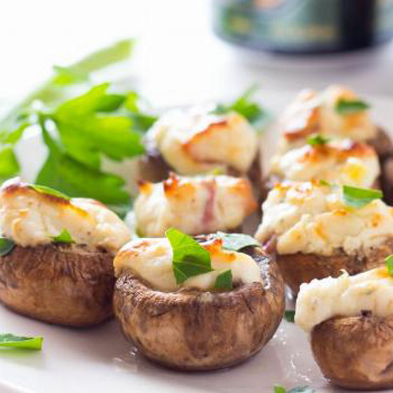 - Stuffed mushrooms with béchamel, bacon and blue cheese