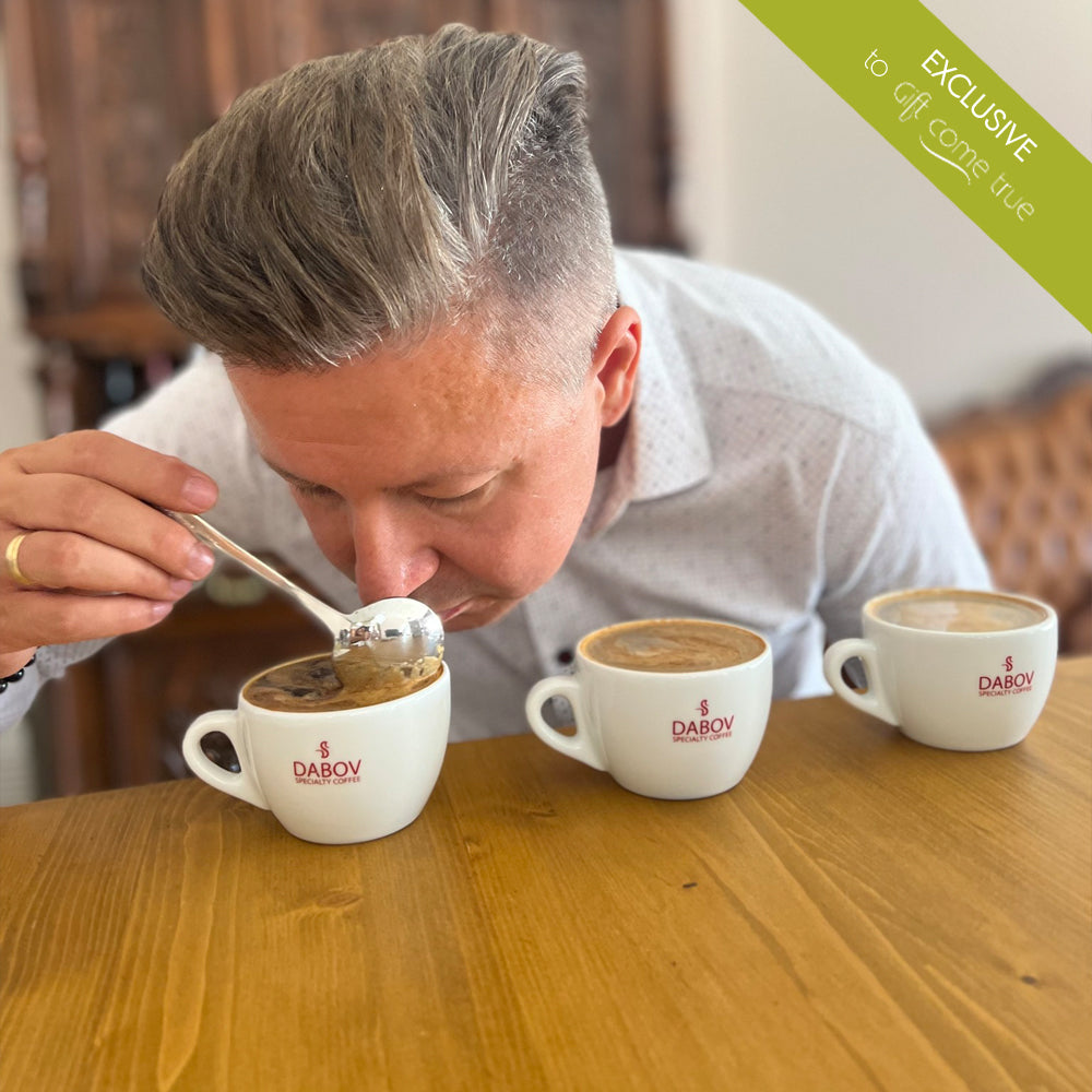 Coffee tasting at Dabov Specialty Coffee Academy includes tasting at least 3 coffees that are prepared using the V-60 method. This is a filtration method of making coffee, which method is used by coffee experts. The coffee prepared in this way has a better extraction, which allows the flavor notes and nuances of the given variety to be used more clearly. This allows you to enjoy the true flavors of the tasting coffee. This way, you will be able to try and enjoy the entire flavor range of coffees – from chocolate notes, to fruit and to the complex flavors that are a combination of the two.