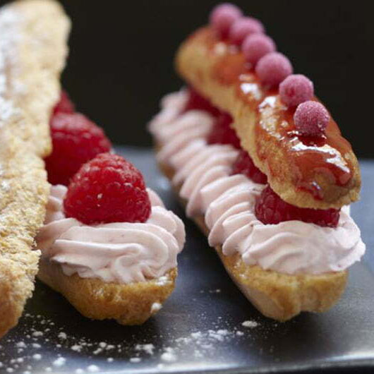 - Eclairs with raspberry mascarpone mousse and raspberry icing