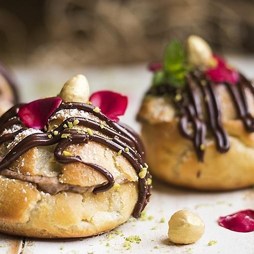 - Choux Chantilly with fluffy vanilla cream and mousseline cream