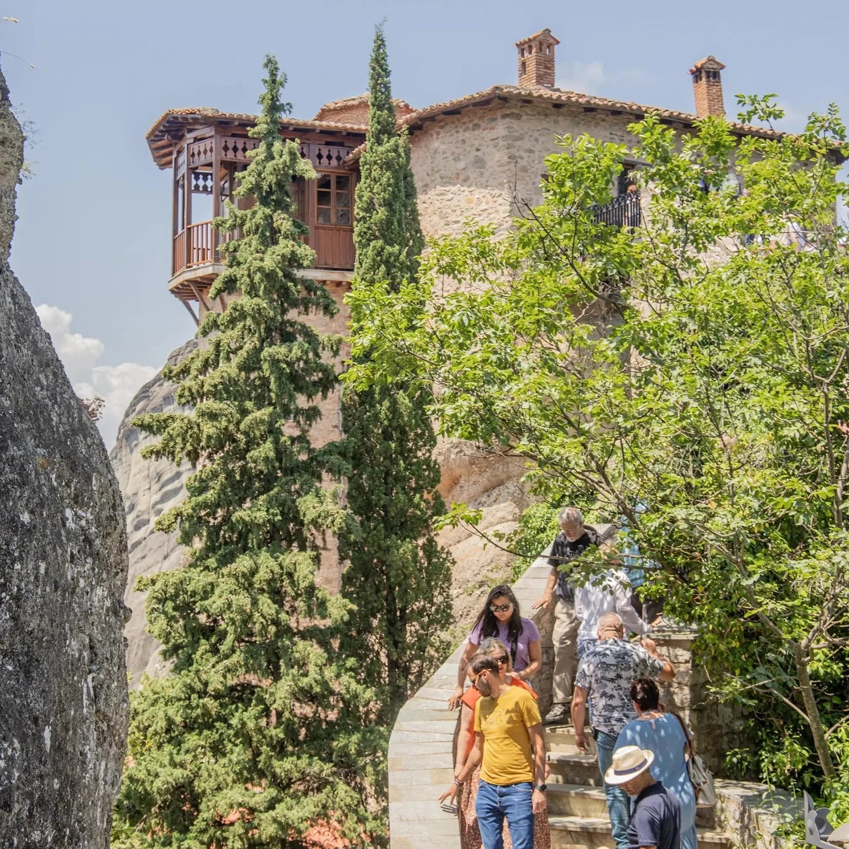 Important: This tour takes place in a group. Please wear comfortable clothes and shoes. Please prepare cash for entrance fees to the monasteries (5 euro/person/monastery). Please wear appropriate clothing for the church and the monastery (no sleeveless shirts and tops, no shorts, no short skirts and dresses). Departure is from Kalambaka or Kastraki
