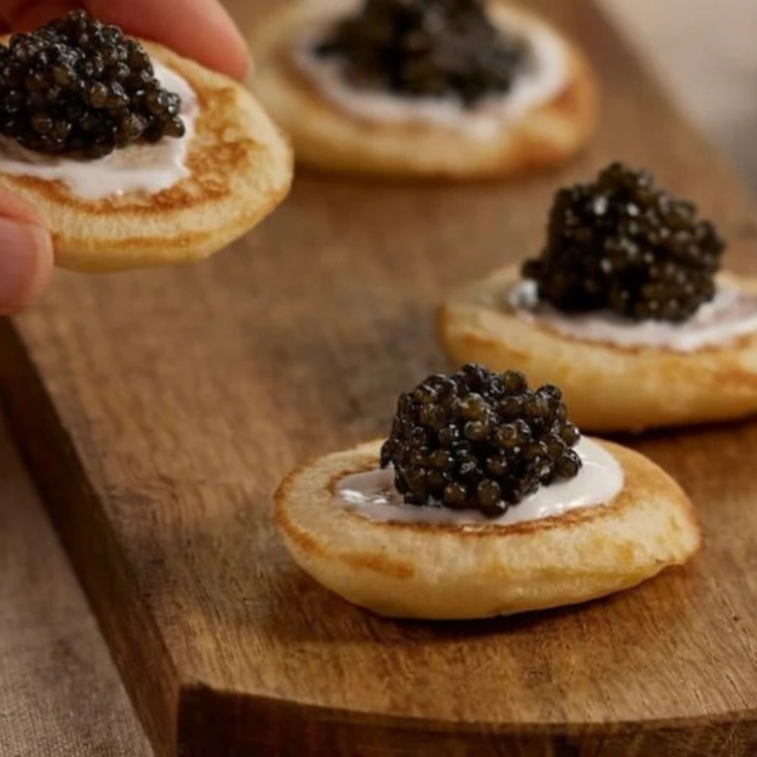 - Buckwheat Blinis with Sturgeon Caviar and Crème Fraîche – small, elegant bites with bold flavor, bringing a sense of luxury and a special-occasion feel.