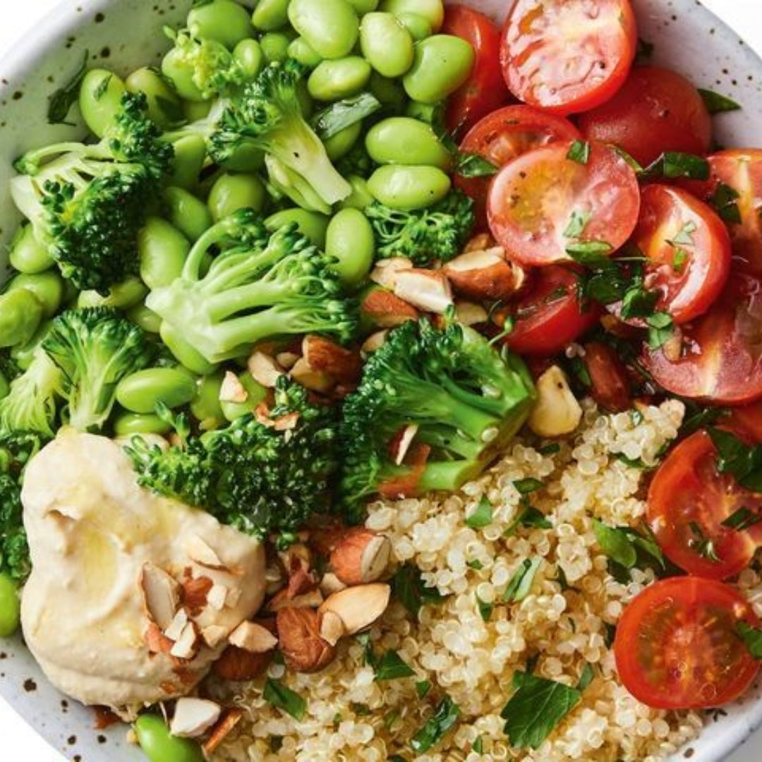 - Broccoli, Radish, Edamame & Quinoa Salad with Crispy Quail Eggs and Katak – a springtime, colorful balance of textures, freshness, tradition, and wholesome flavors.