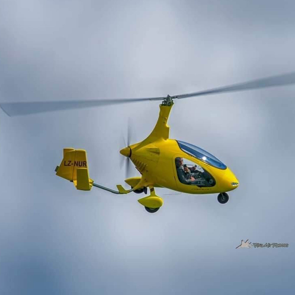 Persons under the age of 12 can fly with written consent from a parent. Maximum passenger weight – 110 kg and the flight has a maximum height of 2000 m. In a favorable weather environment, flights are performed all year round. The gyrocopter model is Auto Gyro Cavalon.