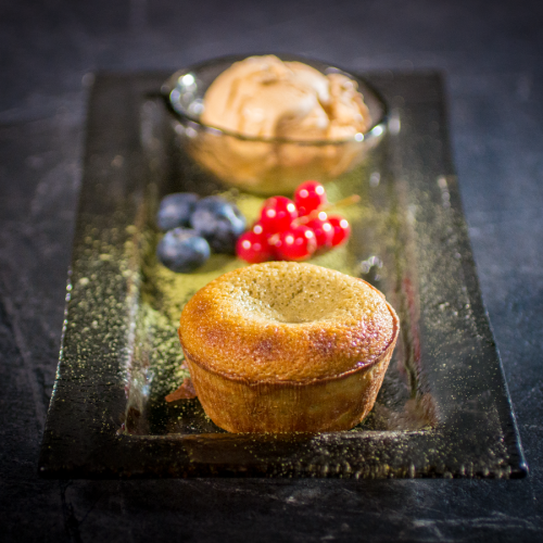 5. Author's souffle with white chocolate and Matcha green tea, with homemade ice cream from Miso-Matcha tasting