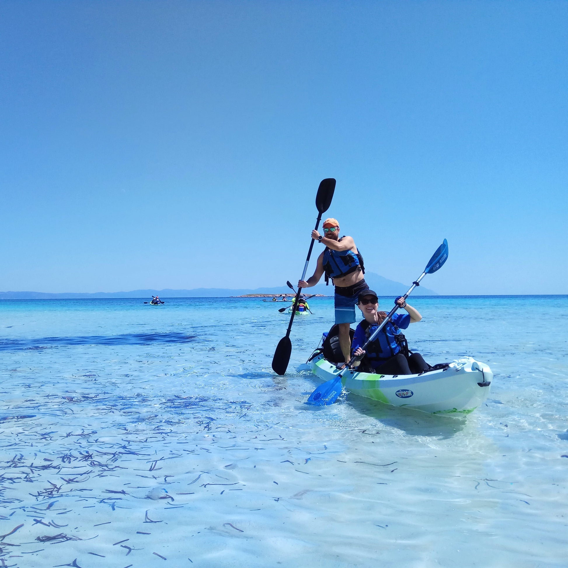 The tour finishes with kayaking back to Mikro Karydi beach.