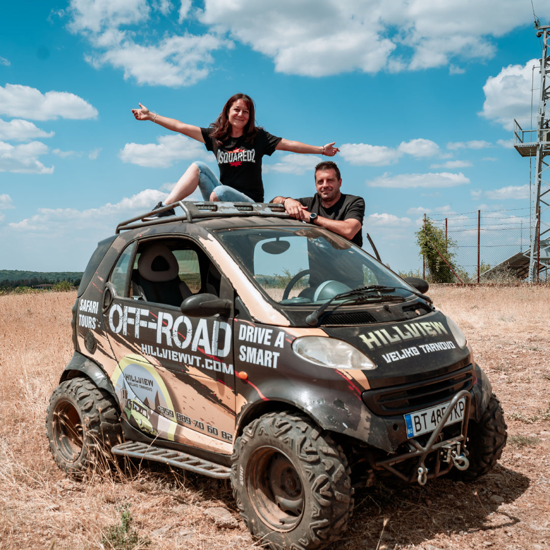 Embark on a unique adventure - driving a Smart For Two for two with breaks of scenic views of Veliko Tarnovo, Tsarevets, Trapezitsa! The car is specially modified with a raised suspension and large off-road tires that will take you through terrain for which many other machines are not prepared. Thanks to the special modifications and the one-of-a-kind performance, you have the opportunity to take advantage of a service that is not available anywhere else in the Balkans! In addition to the strong emotions, you will enjoy the surrounding nature, as well as the views from the hills of Veliko Tarnovo and Arbanassi!