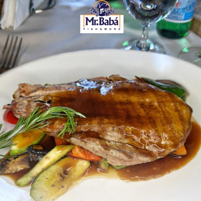 Pirate Pork Plait with BBQ sauce OR Sea Bream with shrimp and caper sauce