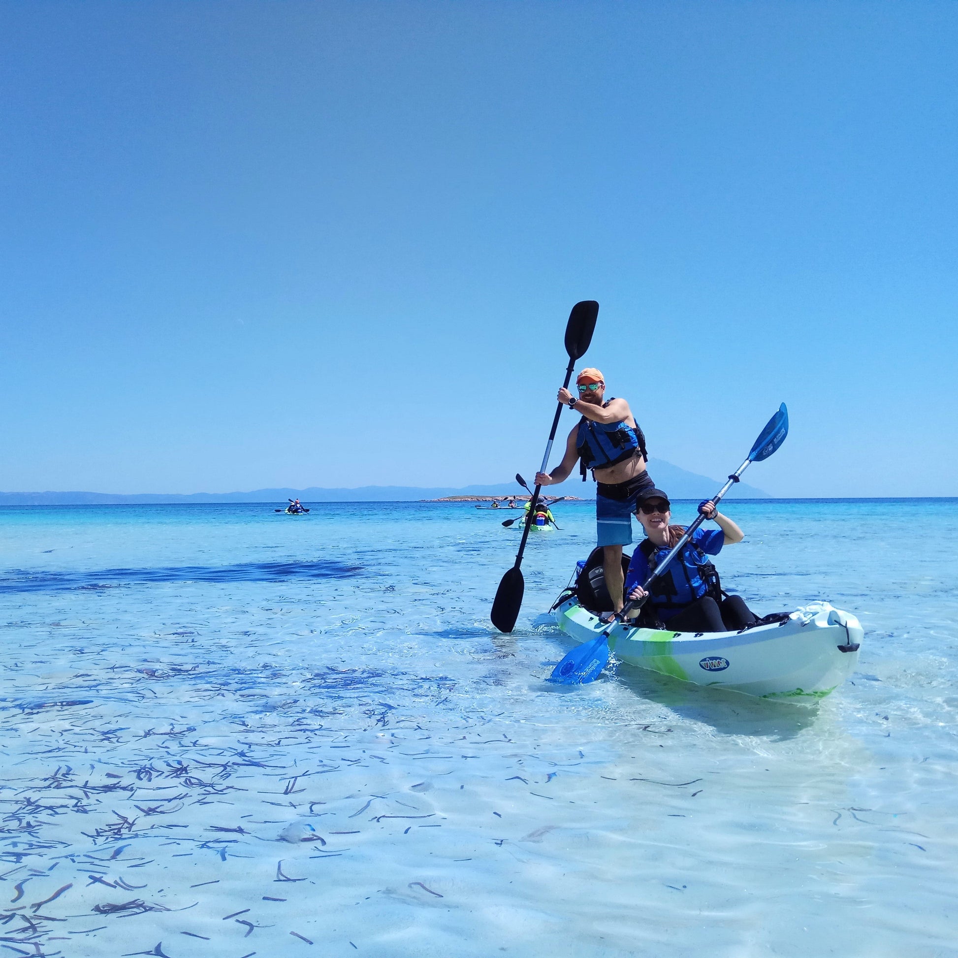 Half-day kayak tour in the crystal waters around Vourvourou and Diaporos island. Greece