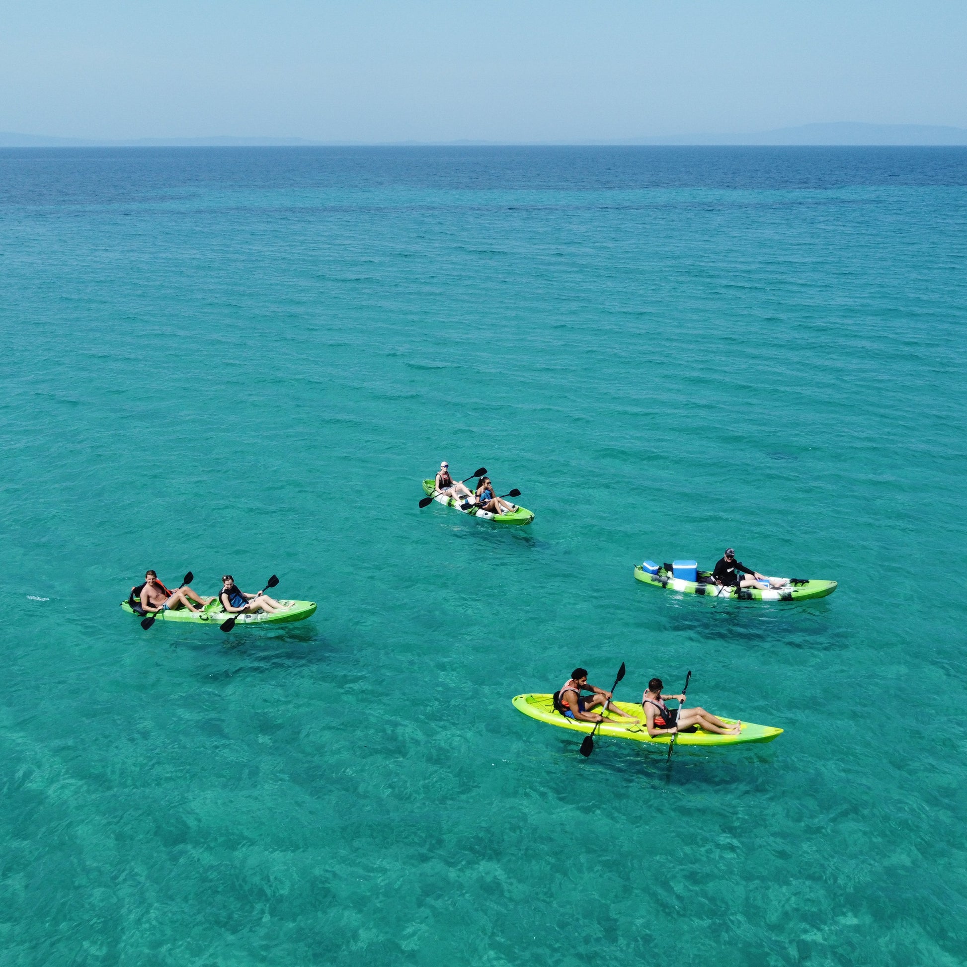 Begin your adventure at Mikro Karydi beach in Vourvourou. Upon meeting you, your guide will ensure that you have all the equipment necessary for an enjoyable kayaking tour. The guide will also show you some basics about the kayak to ensure your safety throughout. Each double kayak has a portable cool-box containing snacks, fruit, bottles of water, and juice.