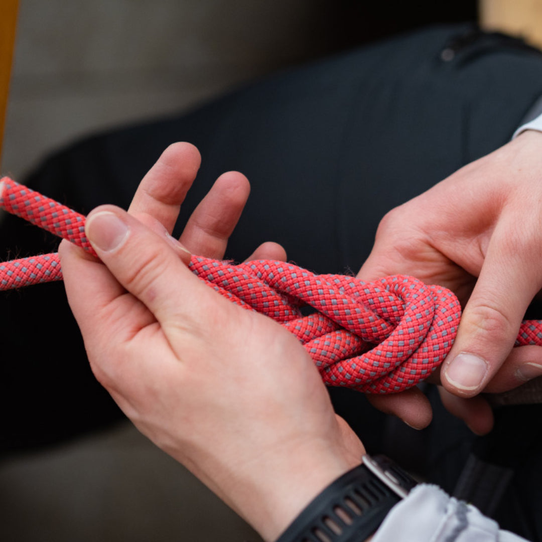 – Proper rope techniques on snowy and mixed ridges, including corniced ridges