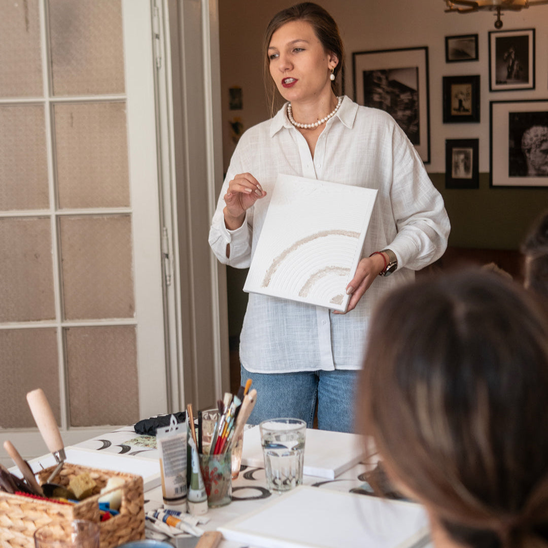 In this workshop, you will discover the essential techniques, tools, and materials used in relief painting. Here, there are no rules and no mistakes – only freedom, joy, and shared moments. You will unlock your inner artist as you experiment with textures, shapes, and colors on a blank canvas. The goal is to free your creativity and let your hands express the soul within you.