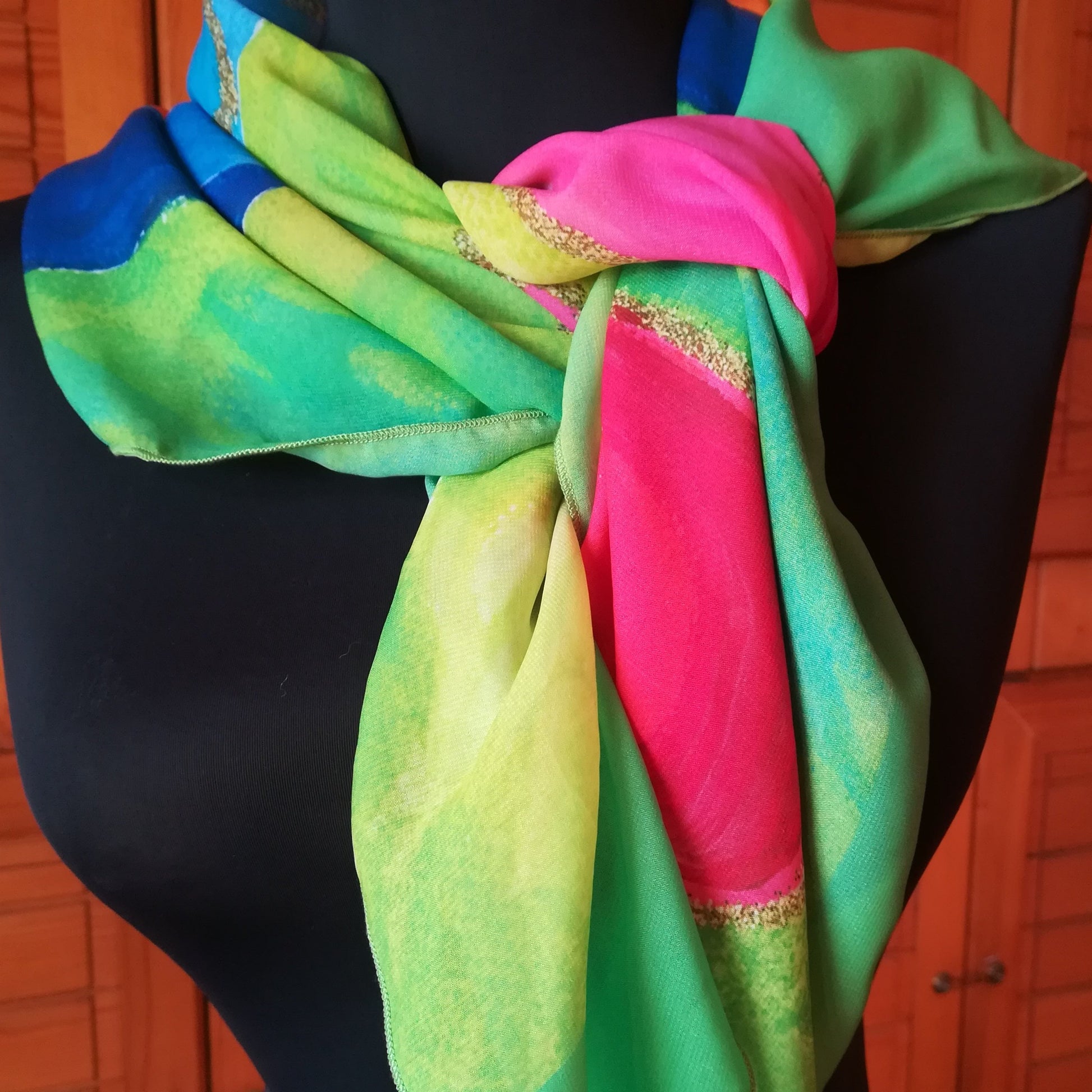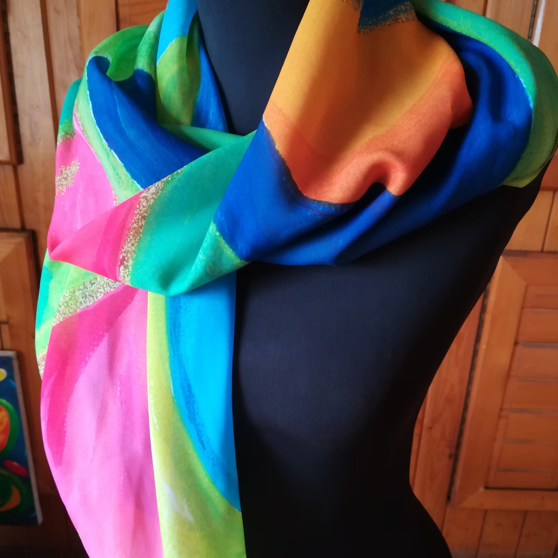 The modern daily lives and the energies we carry within us make us strive to be authentic, to be more and more ourselves among others. If you are such a person, then these scarves are for you! They are printed on a 100/100 cm chiffon. They can be washed in a washing machine and ironed. They are accompanied by Instructions for Use and packed in a neat gift box ready for gift.