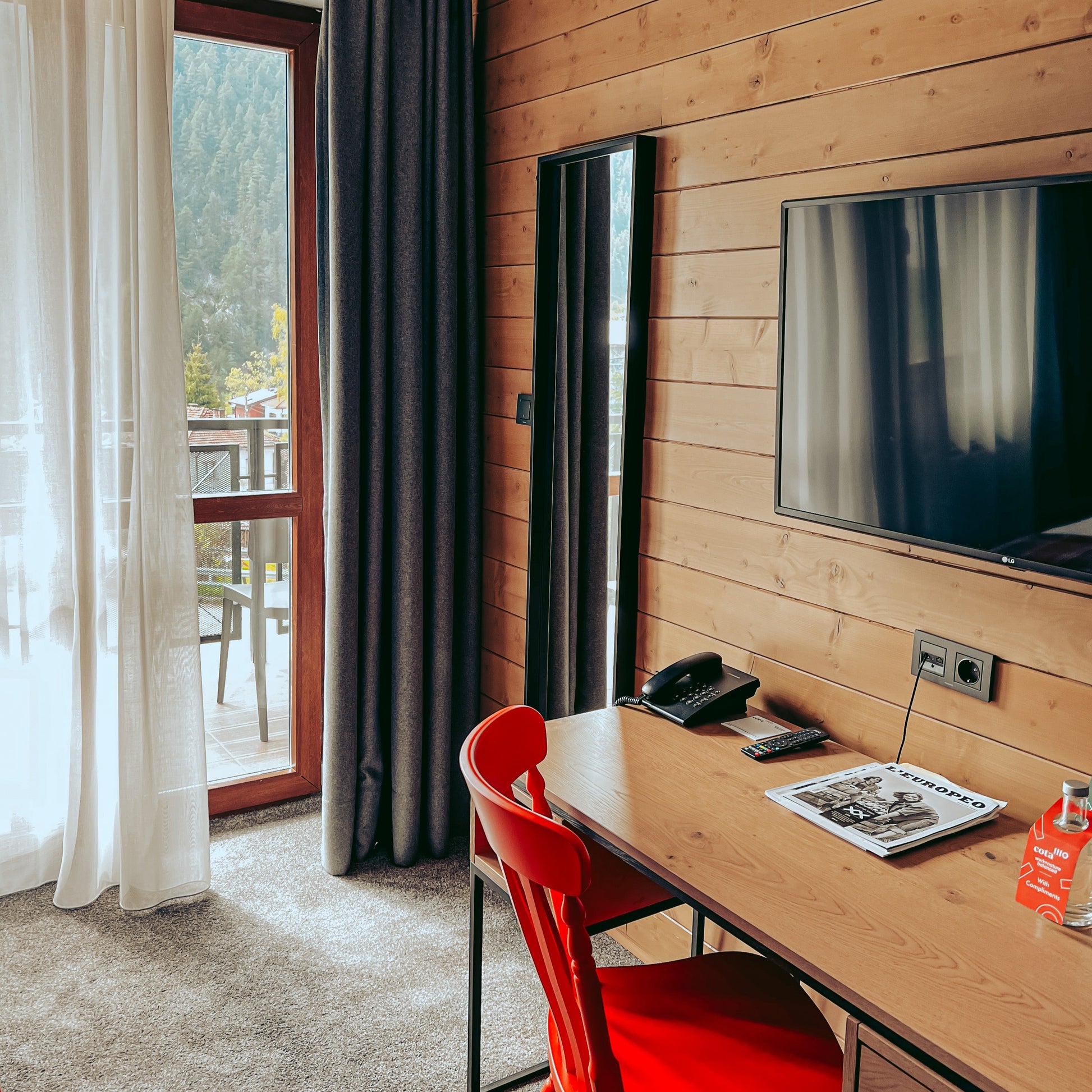Welcome to the magic of Rila mountain! On this secret journey, we will accommodate you in an architectural jewel that combines elements of industrial style and alpine design. Indulge in cozy atmosphere, elegant interior and mouth-watering dishes. The place has its own restaurant, bar, sauna, steam bath, gym and co-working space. For those who love outdoor sports - the hosts are ready to introduce you to their activity center, which offers mountain trekking, paragliding, mountain biking, e-bike rental, horse riding and water sports in the summer. The destination is also perfect for the winter season, as it is located near ski slopes. A ski/snowboard school, snowmobile adventures and a ski/snowboard locker are available on site.