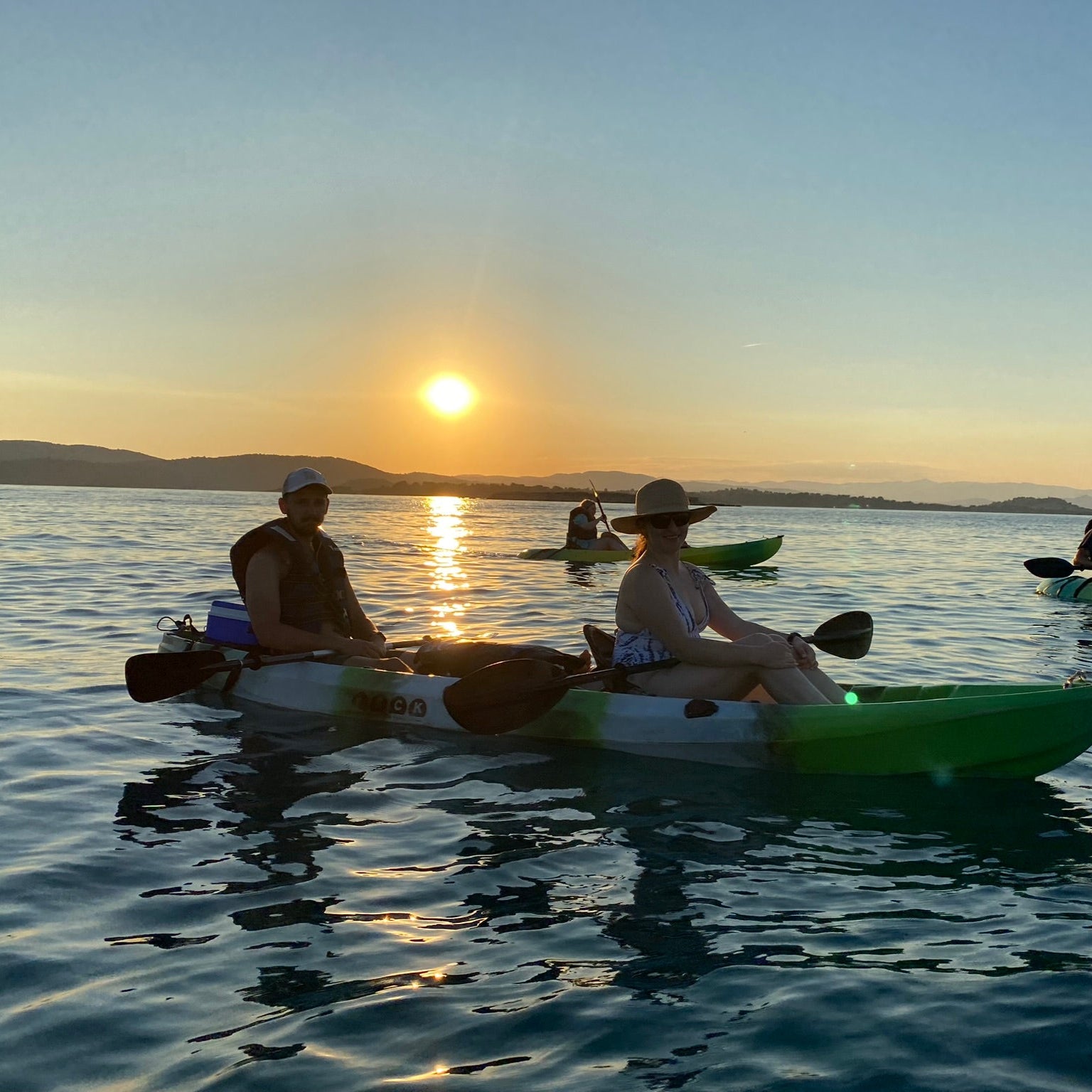 Experience the beauty and magic of the sunset with this sea kayak tour! The emotion that long summer evenings bring is unique! Feel the tranquility and indulge in a romantic paddle with which you will admire the beautiful reflections of the last rays of the sun in the crystal waters near Vourvourou and the island of Diaporos.