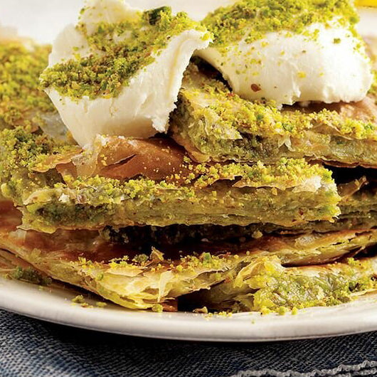 - Fine dessert with cream and pistachios – Aish El Saraya