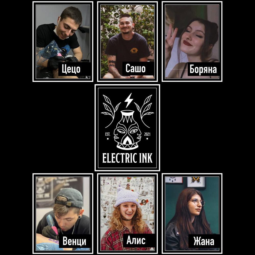 Electric Ink is a newly emerging tattoo studio in Sofia. It was founded in 2021 by Alexander Dedelyanov, an artist with many years of experience in various studios in Bulgaria and abroad. Despite being relatively young,, the studio has proven itself with extremely good reviews from customers and with awards from the Bulgarian tattoo festival.Today, there are 5 tattoo artists working at the studio who strongly believe that the most important thing in a tattoo is that it remains beautiful for a long time and ages appropriately with its owner. This philosophy has established the style of the studio, namely the traditional style of tattooing. Traditional designs (solid outline, black shadow and solid color, combined with a clean design) have proven over time to be the most durable and preferred by tattoo connoisseurs. Electric Ink's portfolio is not limited to traditional tattoos. The studio has an artist for every style you may want, namely: neo-traditional, fineline, black and white realism, mandala, blackwork, illustrative, ignorant/naive, script and other sub-styles.