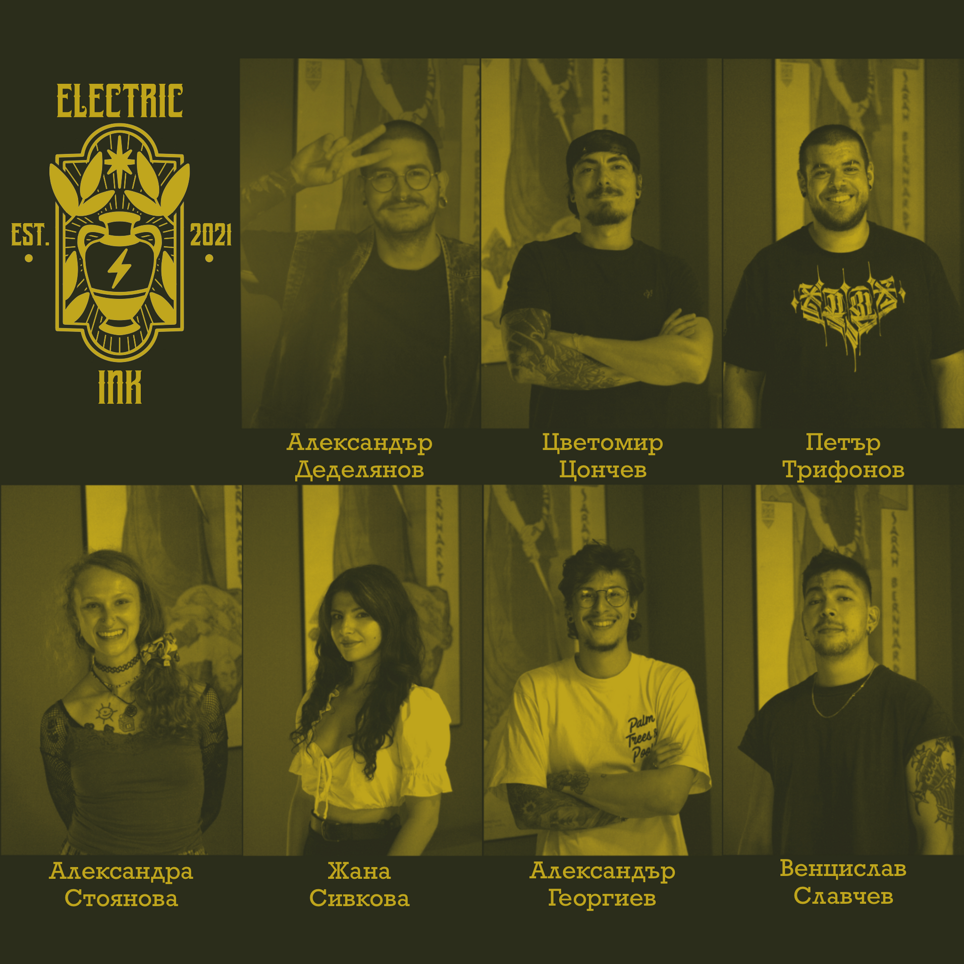 Electric Ink is one of the most popular and valuable tattoo studios in Sofia. It was founded in 2021 by Alexander Dedelyanov, an artist with many years of experience in various studios in Bulgaria and abroad. The studio is an exemplary element in the development of tattoo culture in Bulgaria and has proven itself with extremely good reviews from clients and awards from the Bulgarian Tattoo Festival. Today, the studio employs six tattoo artists and one piercer, who strongly believe that the most important thing is for the process to be safe, painless and for the tattoo to remain beautiful for a long time and age appropriately with its owner. This philosophy builds the style of the studio, namely the traditional style of tattooing. Traditional techniques (solid contour, black shadow and solid color, combined with a clean design) have proven themselves over time as the most sustainable and preferred by tattoo connoisseurs. Electric Ink's repertoire is not limited to traditional tattoos. The studio has an artist for every style you desire, namely: neo-traditional, fineline, black and white realism, mandala, blackwork, illustrative, ignorant/naive, inscription/script, and other sub-styles.